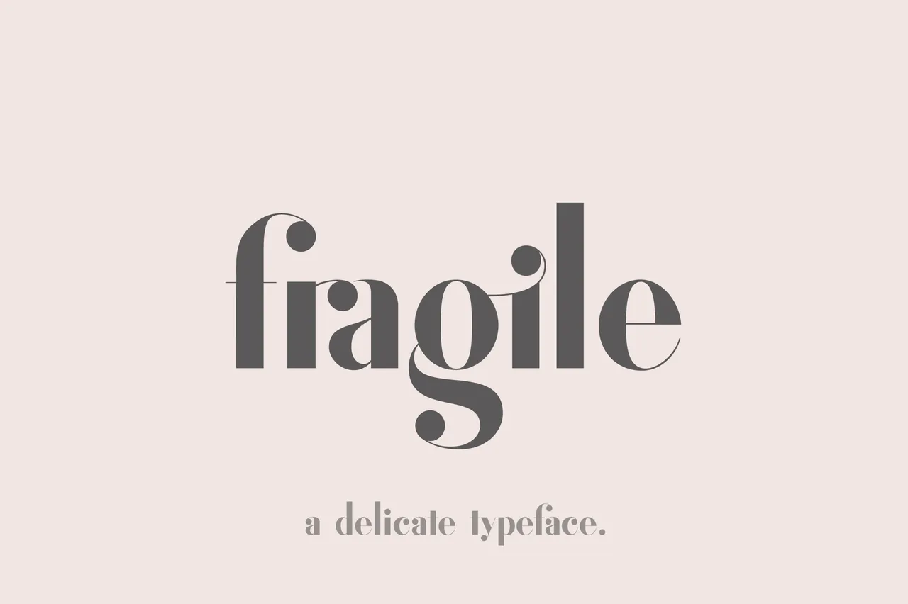 Fragile is a delicately vintage typeface perfect for creating gorgeous statement-making designs with personality. Based on vintage letterforms from the 1960s and 1970s, this high-contrast design is an excellent choice for vintage graphics. Create gorgeous all-caps headlines or try the lowercase for a simply beautiful, delicate look. The clean lines and ball terminals give a sleek, elegant look to logos, wedding invitations, editorials, and more.
