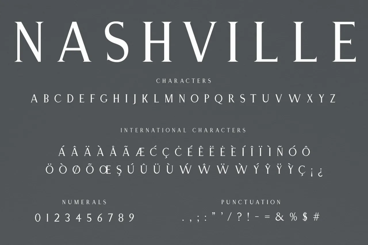 Nashville is an elegant all-caps serif typeface perfect for creating eye-catching, classically balanced typography. With subtle contrast and the sharpest serifs, it is designed to be readable, whether in headlines or subheads. Well-suited for crafting wedding invitations, logos, book covers, film titles, or any project that requires something stately or luxurious. Add a bit of polish to your designs with Nashville.