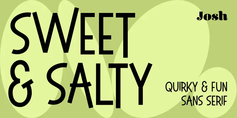 Sweet & Salty is a quirky, fun sans serif typeface with a bouncy baseline—use it to add play to logos, posters, craft projects, food packaging, bold headlines, and more.