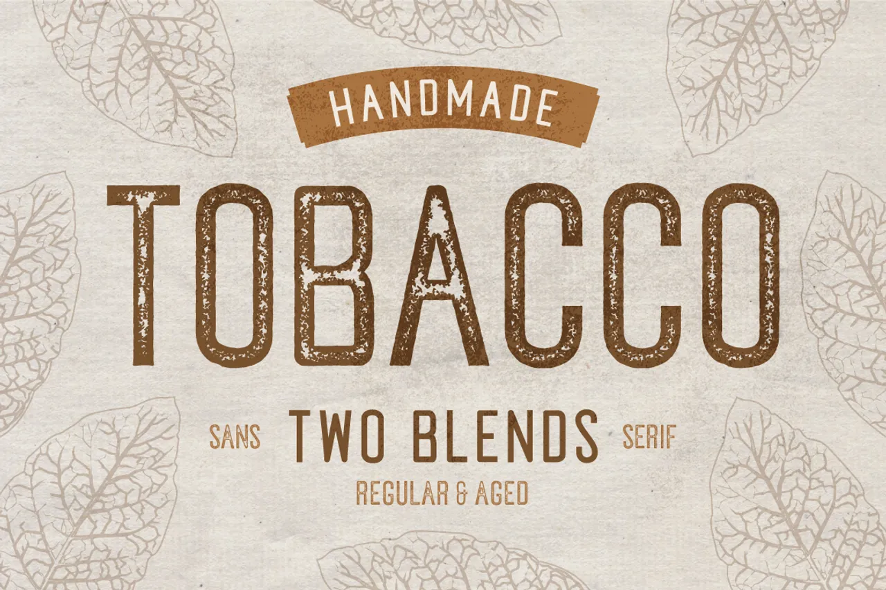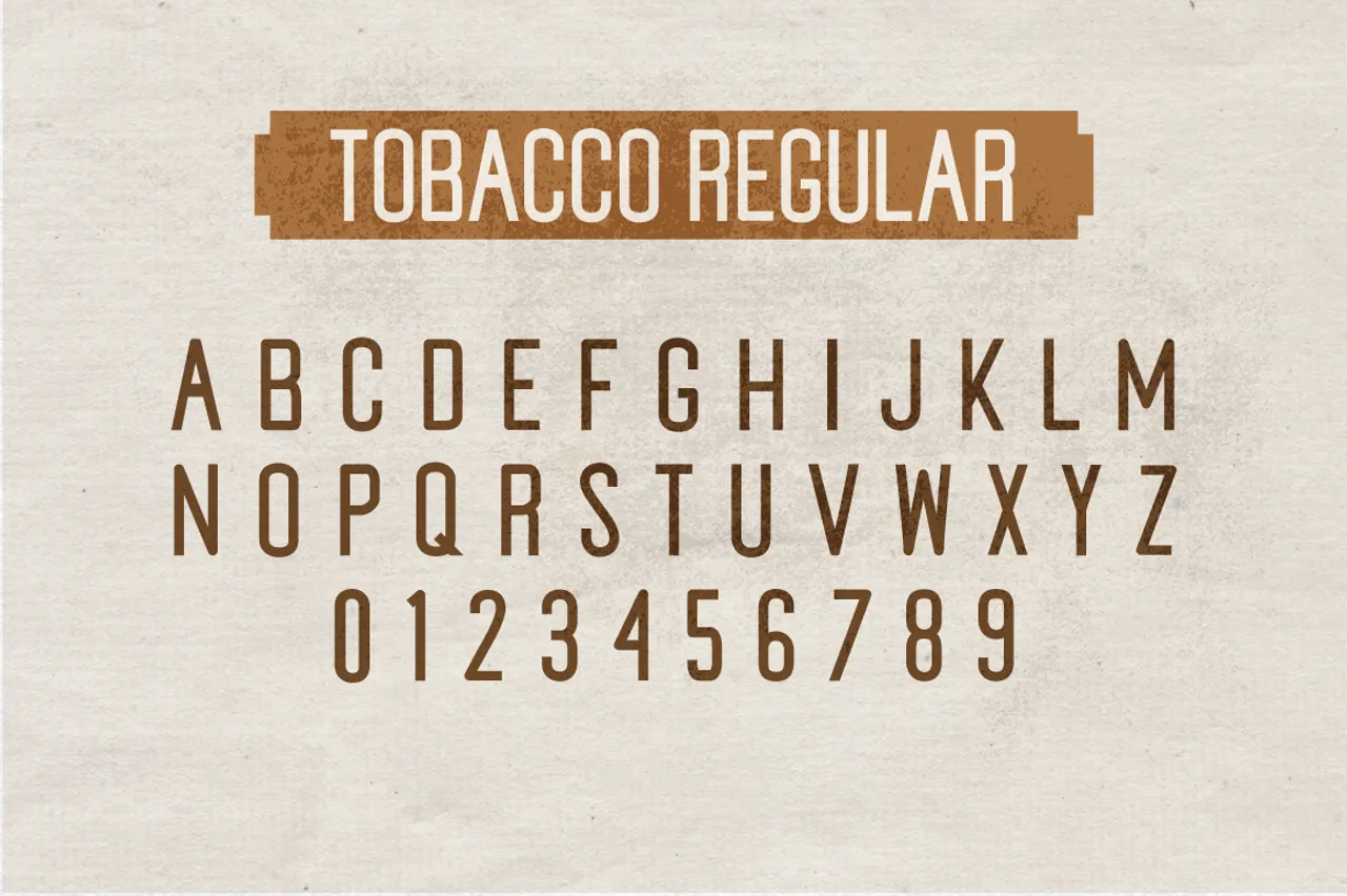 Tobacco is a handmade condensed sans serif in two styles: distressed and clean—create a vintage aesthetic for fashion labels, brand assets, book covers, and more.