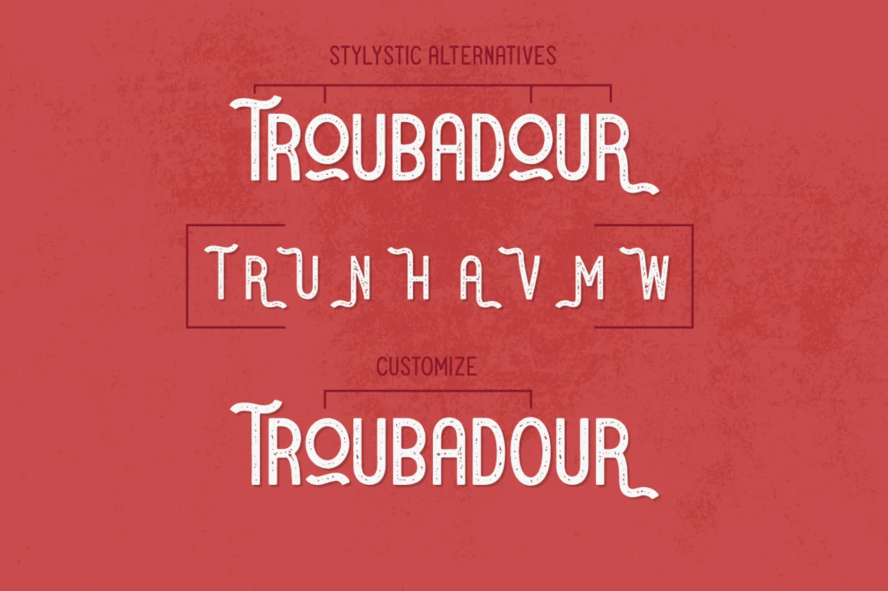 Troubadour is a distinctive, condensed, sans serif font family. Featuring three condensed styles — Regular, Round, and Rough — to mix and match, and a handful of playful stylistic alternates for added flexibility. With legibility at its core, craft fantastic magazine headlines, food packaging, brand assets, fashion labels, movie posters, and anything else where a little character will make a big difference.